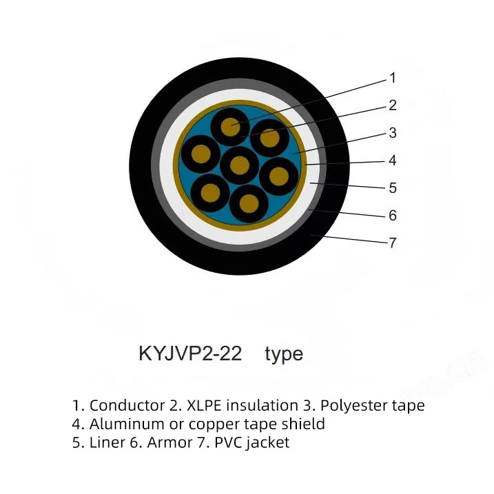 Если вам нужен кабель с максимальной защитой для критически важных систем управления в условиях сильных электромагнитных помех, высоких механических рисков и сложных условий окружающей среды (таких как прямое захоронение и влажность), прочный контрольный кабель STA с изоляцией из сшитого полиэтилена, экранированной медной оплеткой из сшитого полиэтилена, модель KYJVP-222, модель KYJVP-222, ведущего китайского производителя, отвечает этим требованиям. Он сочетает в себе три лучших характеристики: двухслойный экран из медной проволоки (P2), стальную ленточную броню (22) и термостойкость до 90°C (YJ), разработанные для обеспечения абсолютной чистоты сигналов и абсолютной безопасности физических соединений в самых суровых условиях.